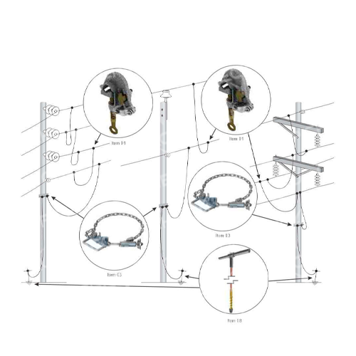Esse modelo de aterramento temporário é muito versátil, pois permite a sua instalação em diferentes configurações de redes, tais como: distribuição trifásica vertical, horizontal e rede monofásica.